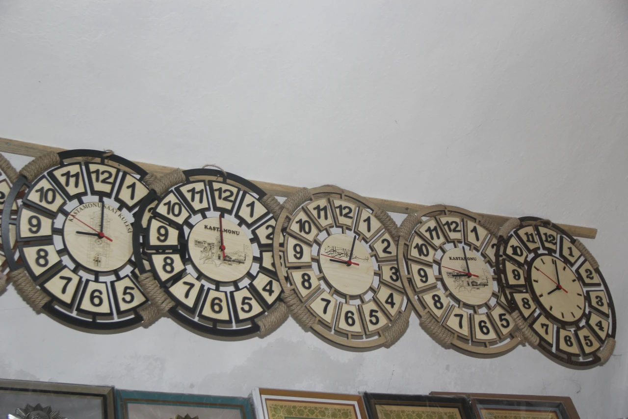 Münire Sultan Medresesi Gülten Hanım Sanat Evi İş Yeri Sahibi Veli Süngü Kastamonu’nun kültürel değerlerini yaşatmak ve tanıtmak için ahşap saat tasarlamaya ve üretmeye başladı.