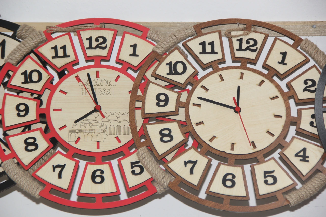 Gülten Hanım Sanat Evi İş Yeri Sahibi Veli Süngü, ahşap saat yapım sürecini ve amacını şu sözlerle açıklayarak; “Dükkânımda Kastamonu’yu yaşatmak ve bu şehrin kültürünü daha fazla insana tanıtmak istedim. Bu düşünceden yola çıkarak ahşap duvar saatleri tasarlamaya ve yapmaya başladım. Ahşap benim için sadece bir malzeme değil; yürek ve ruh işidir. İnsan ahşapla çalıştıkça el becerisi gelişiyor, sabrı artıyor. Ben de bu işi severek yapıyorum. Bilinen klasik saat modellerinden farklı, özgün tasarımlar ortaya koymaya çalışıyorum. Her bir saat, tamamen kendi hayal gücüm ve emeğimle şekilleniyor. Bir saat tasarlamadan önce uzun bir hazırlık süreci oluyor. Tasarladığım bir saatin parçalarını hazırlamak ortalama 3 ila 5 gün sürüyor. Bu süreçte sadece görselliği değil, işleyişi de düşünüyorum. Çünkü bir çizim için oldukça detaylı matematiksel hesaplamalar yapmak gerekiyor. Ahşaptan yapılacak dişli sayıları, dişliler arasındaki mesafeler, makaralar, bilyeler ve denge noktaları gibi birçok detayı tek tek hesaplıyorum. Tüm bu hesaplamalardan sonra çizimleri yapıyor, kalıplarını çıkarıyorum. Her şey hazır hale geldiğinde ise dükkânımda saatlerin yapımına başlıyorum. Parçalar hazır olduktan sonra birkaç gün içerisinde saati tamamen ortaya çıkarıyorum. Her yeni saat modelinde kendimi biraz daha geliştirdiğimi hissediyorum. Tamamında kendi hazırladığım ahşap malzemeleri kullanıyorum ve dışarıdan hazır parça almamaya özen gösteriyorum. Yaptığım saatler, kendi enerjisiyle çalışma prensibine dayanıyor. Saat bir kez kurulduktan sonra, ayarlanan süre boyunca durmaksızın çalışıyor. Yer çekiminin de etkisiyle kendi enerjisini üretiyor. Bu sistem hem dikkat çekiyor hem de insanları oldukça şaşırtıyor. Bugüne kadar 10’dan fazla ahşap saat yaptım. Şehir dışından gelen misafirlerimiz de Kastamonu halkı da bu saatlere yoğun ilgi gösteriyor. Evlerinde dekoratif amaçlı kullananlar olduğu gibi, sevdiklerine hediye olarak alanlar da oluyor. Yaptığım her saat el emeği göz nuru olduğu için benim için çok kıymetli. Fiyatlarını da herkesin ulaşabileceği seviyede tutmaya çalışıyorum. Ne çok yüksek ne de çok düşük; saatlerim ortalama 400 TL’den alıcı buluyor” dedi.