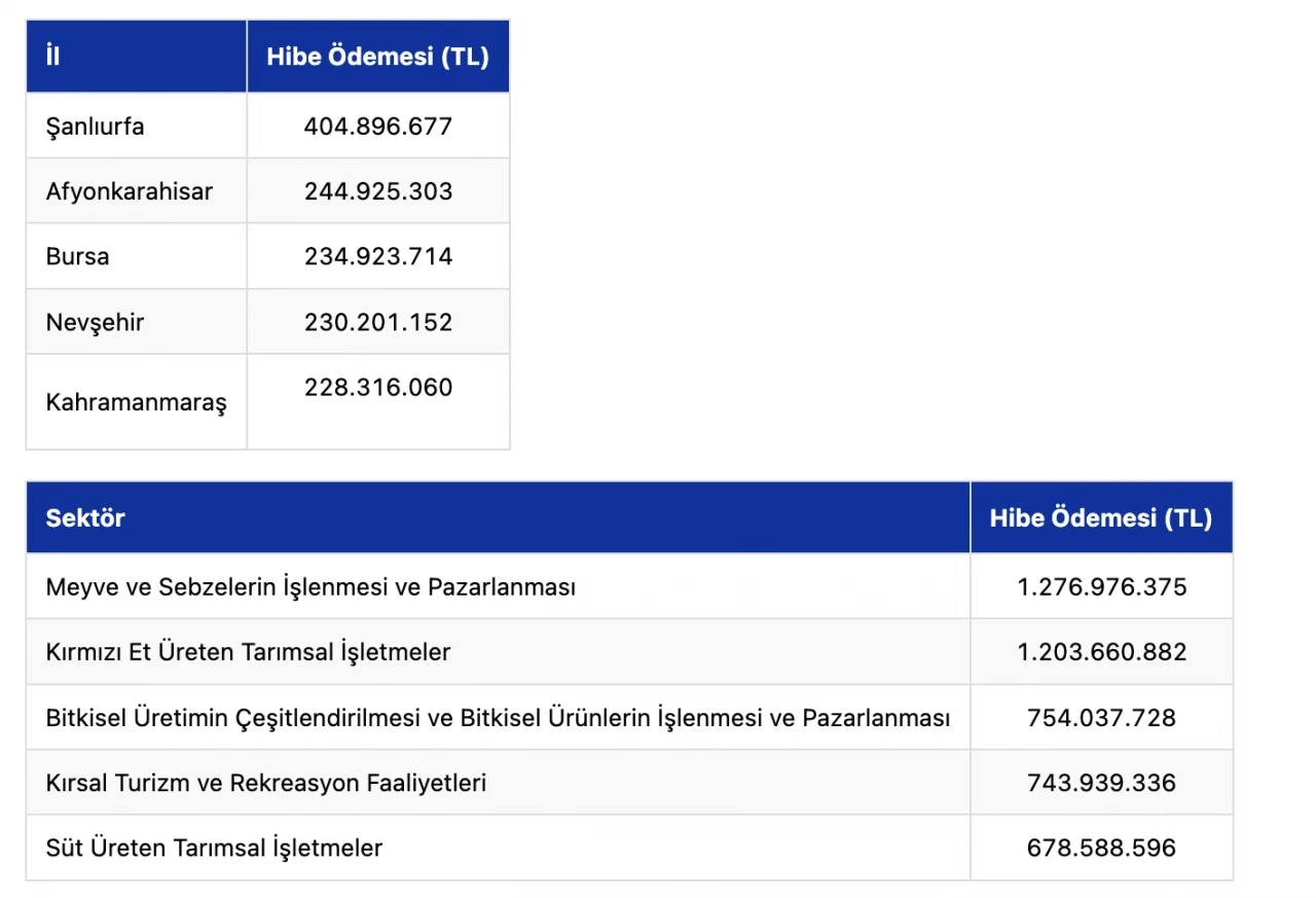 IPARD-III kapsamında bugüne kadar verilen hibe desteklerinin il bazında dağılımı incelendiğinde, ülkenin farklı bölgelerinden illerin öne çıktığı görüldü. Buna göre Şanlıurfa, 404 milyon 896 bin 677 lirayla ilk sırada yer aldı. Bu ili, 244 milyon 925 bin 303 lirayla Afyonkarahisar, 234 milyon 923 bin 714 lirayla Bursa, 230 milyon 201 bin 152 lirayla Nevşehir ve 228 milyon 316 bin 60 lirayla Kahramanmaraş izledi.