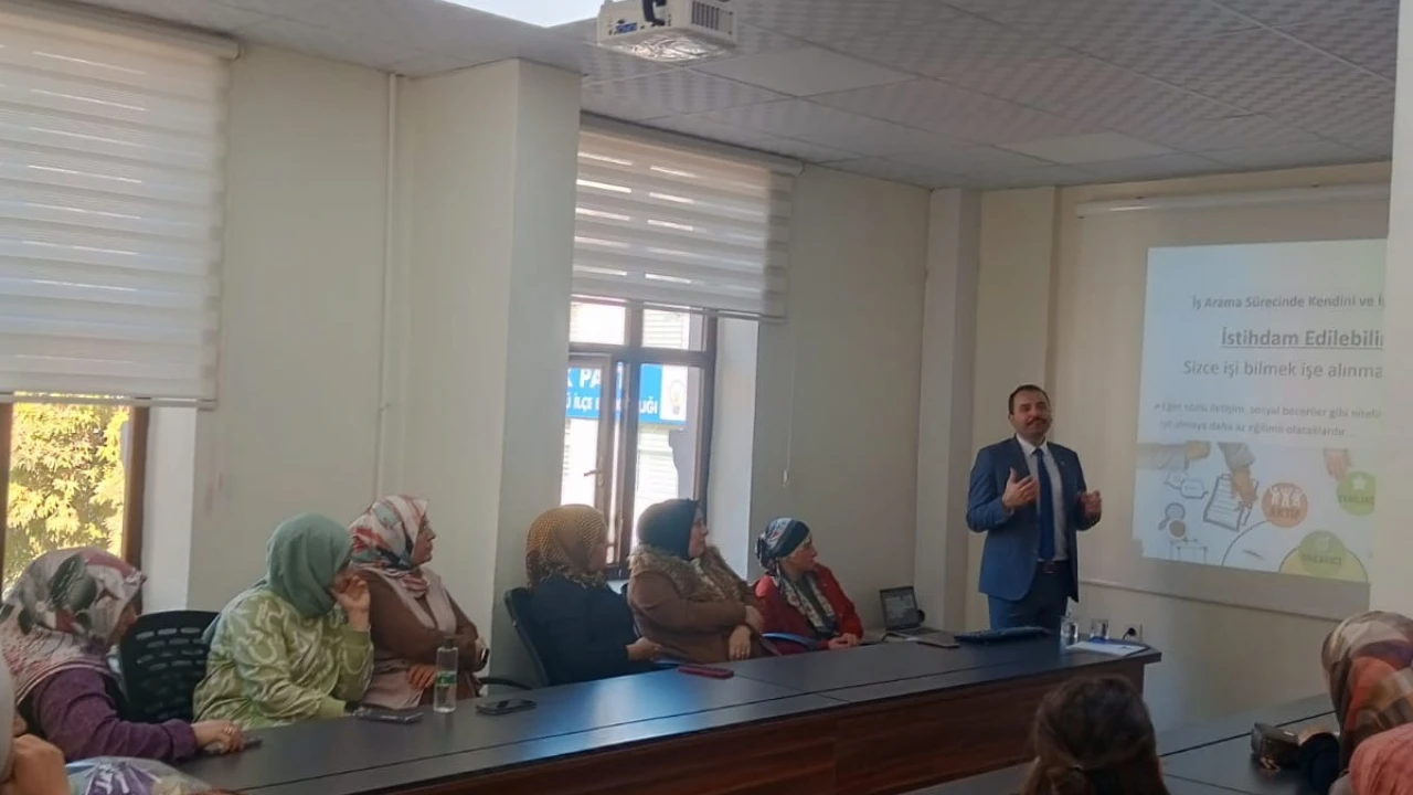 Taşköprü Sosyal Yardımlaşma ve Dayanışma Vakfı Aile Destek Merkezi bünyesinde devam eden dikiş ve nakış kursunda eğitimini sürdüren kursiyerlere yönelik iş arama sürecinde kendini ve işgücü piyasasını tanıma, iş arama kanalları, özgeçmiş hazırlama, mülakat teknikleri ve beden dili konularını içeren “İş Kulübü Eğitimi” İş Kulübü Lideri tarafından gerçekleştirildi.