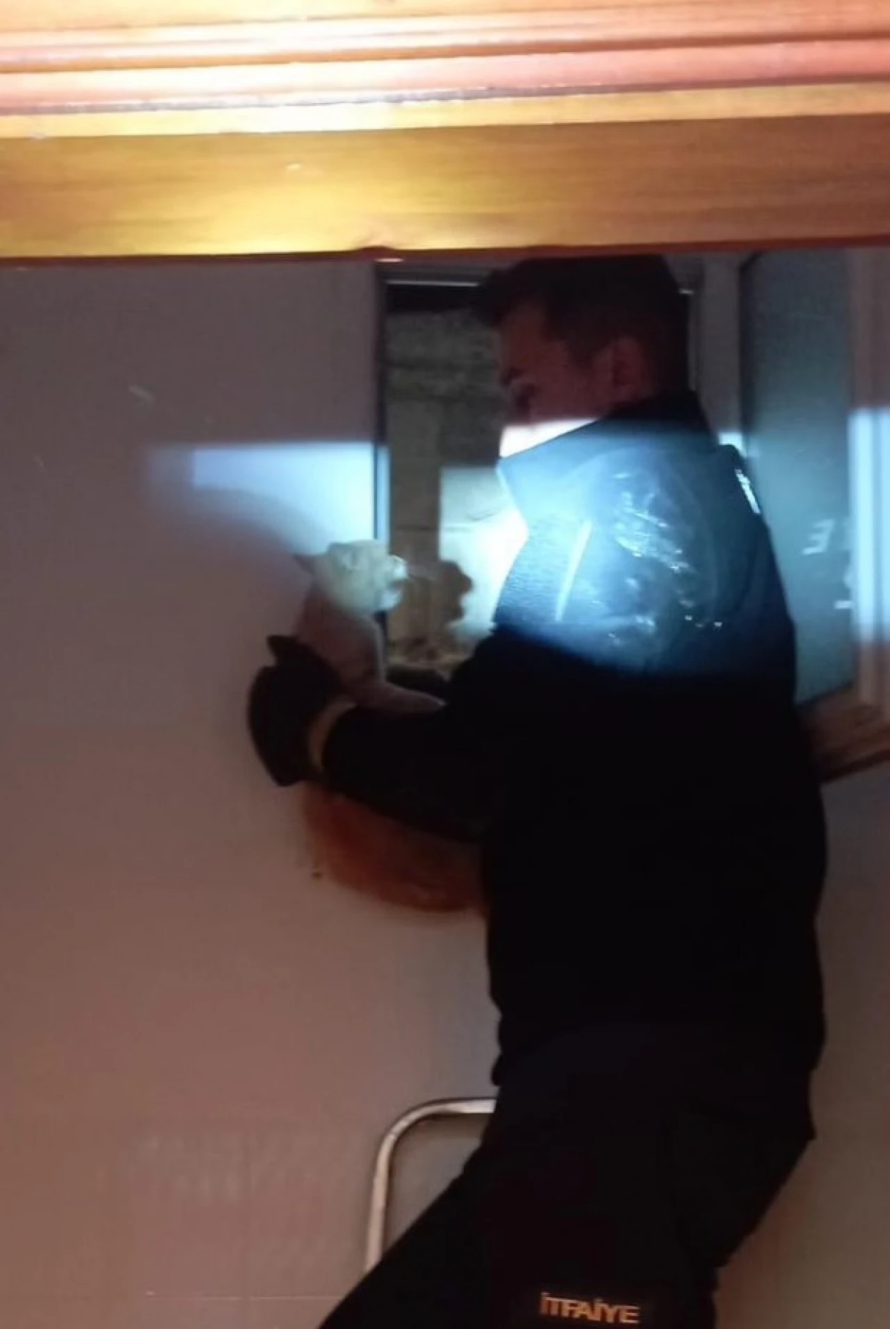 Kastamonu'nun Taşköprü ilçesinde bir binada mahsur kalan yavru kedi, itfaiye ekiplerinin hızlı müdahalesiyle kurtarıldı.