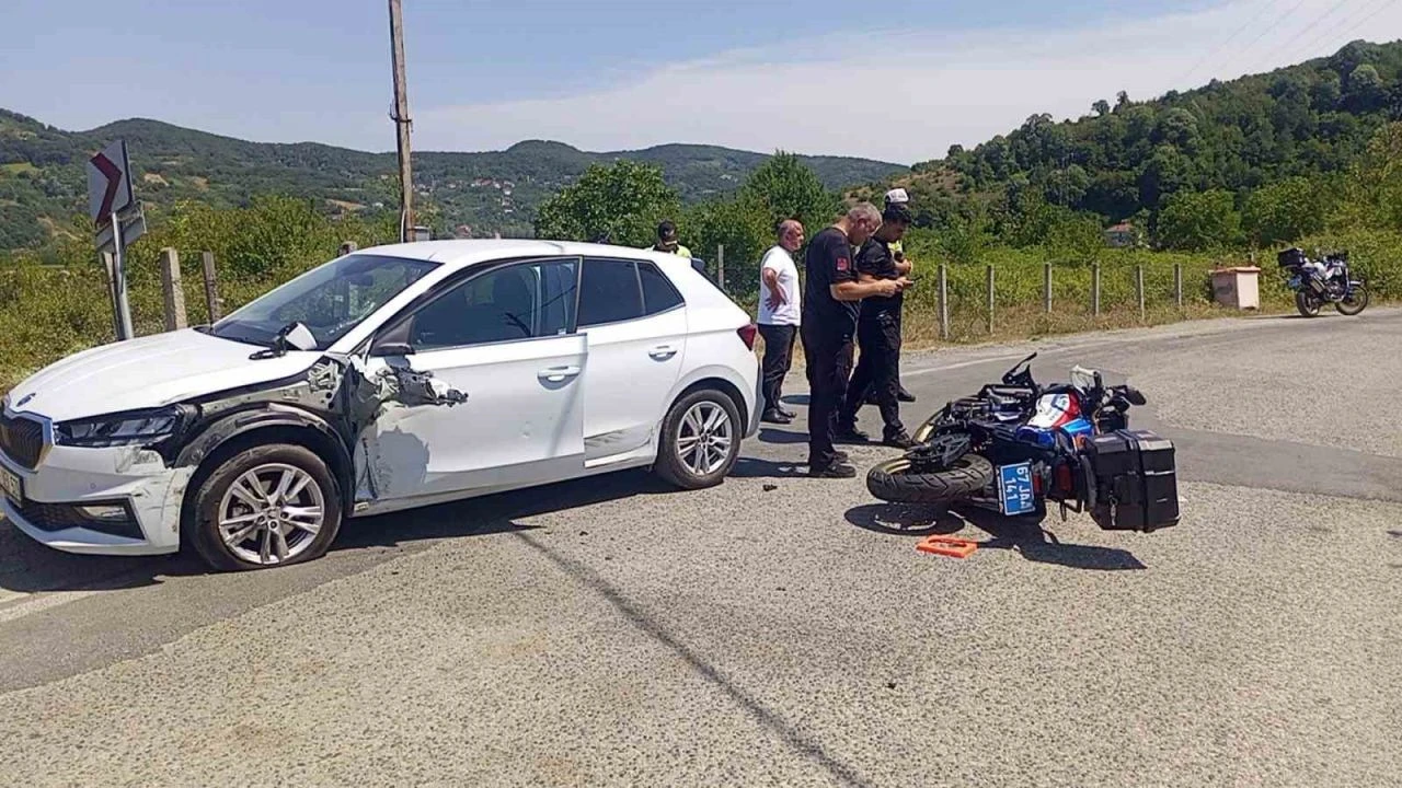 Zonguldak’ın Çaycuma ilçesinde jandarmaya ait motosikletle otomobilin çarpışması sonucu meydana gelen kaza maddi hasarla atlatıldı.