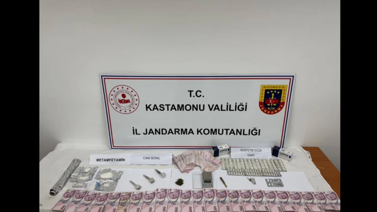 Edinilen bilgiye göre; Kastamonu İl Jandarma Komutanlığı ekiplerine uyuşturucu madde imal ve ticareti yapan şahıslara yönelik operasyonlarda; Cide’de E.A. isimli şahsın ikametinde yapılan aramada esrar maddesi ve 1 adet ruhsatsız av tüfeği, merkezde C.T. isimli şahsın üst ve ikametinde yapılan aramada metamfetamin, sentetik ecza hapı, 1 adet ruhsatsız tabanca ve tabanca fişeği ele geçirildi. Ayrıca; merkezde M.D. ve B.K. isimli şahısların ikametinde yapılan aramada metamfetamin, sentetik ecza hapı, esrar maddesi ve 39 bin 730 TL suçtan elde edildiği değerlendirilen para ele geçirildi.