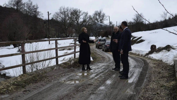 Ağlı Kaymakamı Büşra Çelebi, İlçe Özel İdare Müdürü İsa Kılınç, Köylere Hizmet Götürme Birliği Müdürü Mustafa Yalçın ve Kabacı Köyü Muhtarı Ramazan Turan ile birlikte Kabacı Köyü Murtaza Mahallesi’nde bulunan derede incelemelerde bulundu.