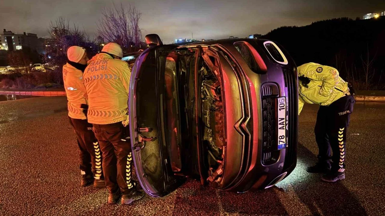 Kaza 100. Yıl Mahallesi 1010 Nolu Sokak’ta meydana geldi. Kimliği belirlenemeyen sürücü idaresindeki 78 AAV 106 plakalı hafif ticari araç Safranbolu istikametine seyir halindeyken kaldırıma çarpıp yaklaşık 50 metre ilerledikten sonra devrildi. Kazada araçta bulunan Ezgi Ç. yaralandı. İhbar üzerine olay yerine polis, itfaiye ve 112 Acil Servis ekipleri sevk edildi. Araçta sıkışan yaralı diğer sürücülerin yardımıyla çıkarılırken sağlık ekiplerinin ilk müdahalesinin ardından hastaneye kaldırıldı.