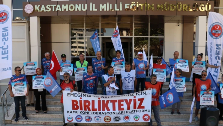 Kamu Konfederasyonları Platformu tarafından Kastamonu İl Milli Eğitim Müdürlüğü önünde basın açıklaması yapılarak, 7'nci Dönem Toplu Sözleşme süreci eleştirildi.