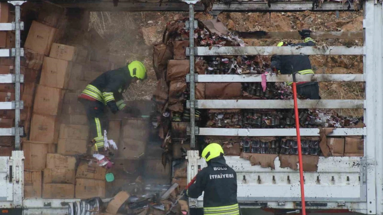 TEM Otoyolu'nun Bolu geçişinde züccaciye ürünü yüklü kamyonun dorsesinde çıkan yangın ekiplerce söndürüldü.