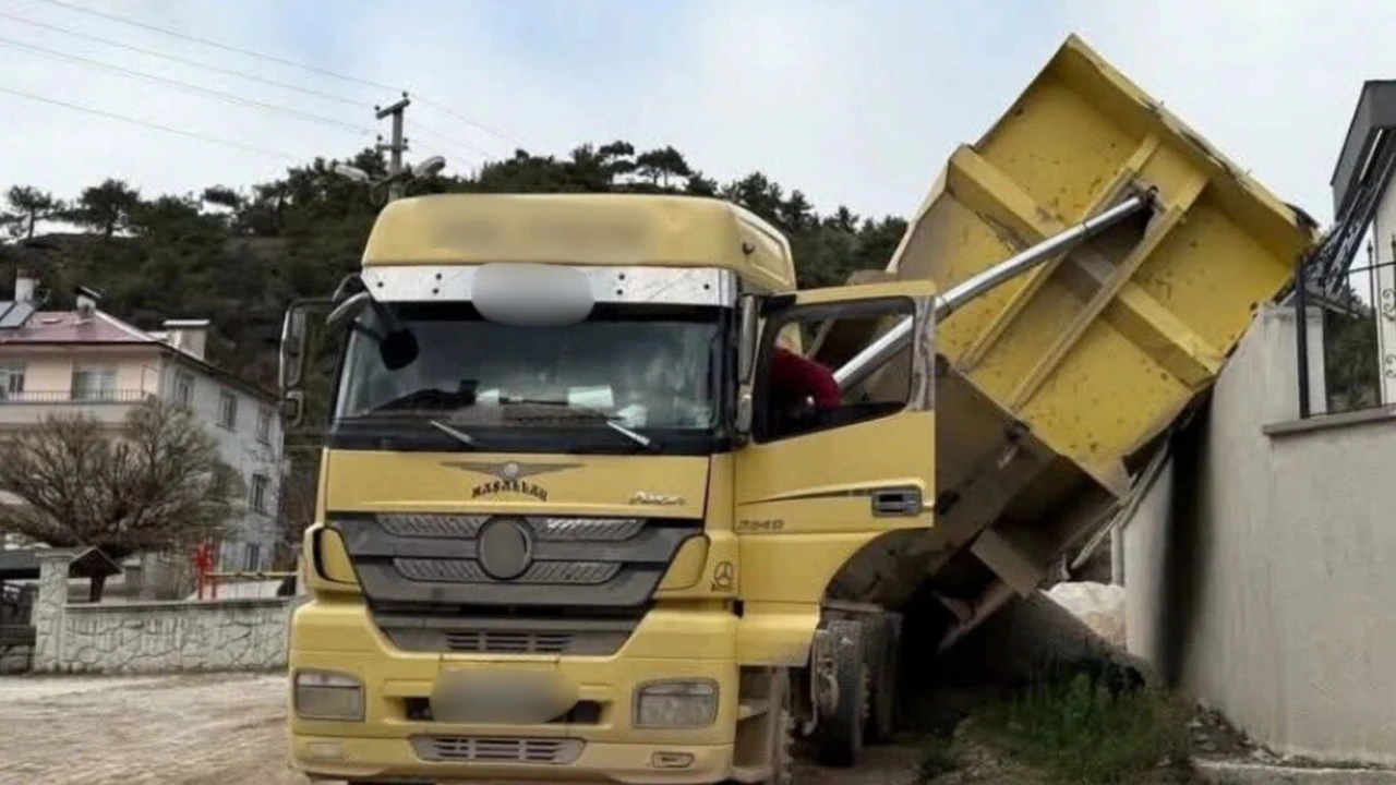 Edinilen bilgilere göre, hafriyat kamyonunun kasası, kum boşaltıldığı sırada lisenin bahçe duvarına devrildi.