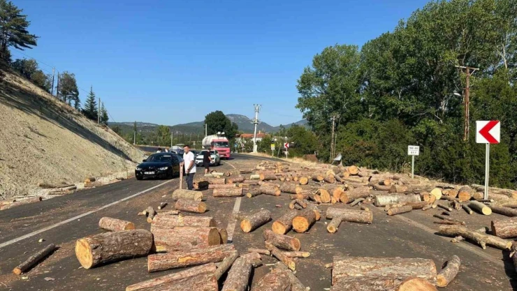 Kamyonda Yüklü Odunlar Yola Saçıldı