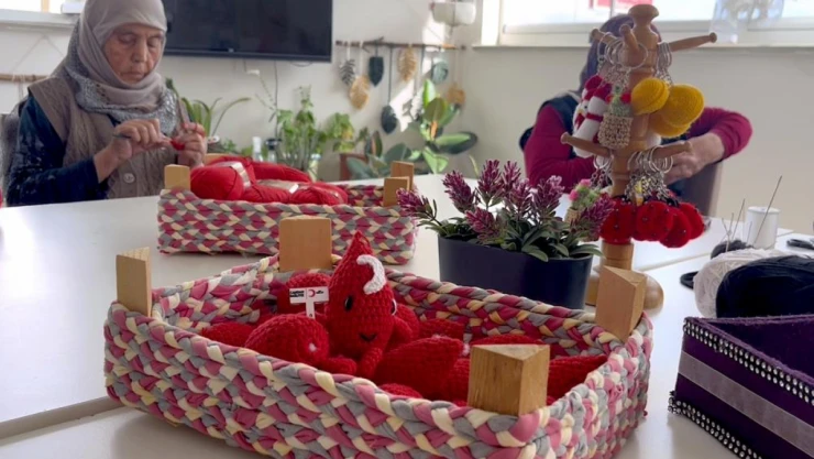 Huzurevinde bulunan kadınlar, kan bağışına farkındalık oluşturmak için "kan damlacığı" şeklinde anahtarlıklar ördü. Tosya Halk Eğitim Merkezi El Sanatları Öğretmeni Nurdan Çevik rehberliğinde gerçekleştirilen çalışmaya katılan kadınlar, anlamlı projeye dahil oldukları için mutlu olduklarını söyledi.