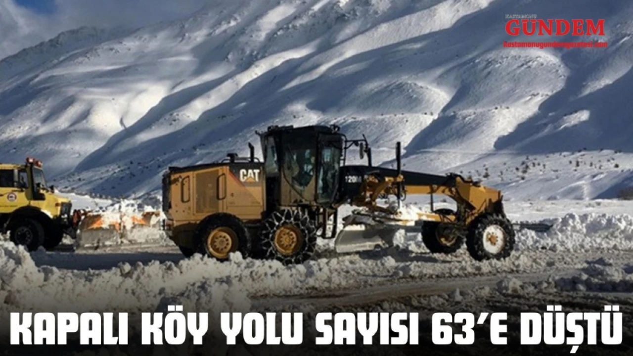 Kastamonu genelinde etkili olan yoğun kar yağışı sonrası yürütülen çalışmalar neticesinde kapalı köy yolu sayısı 63'e düştü.