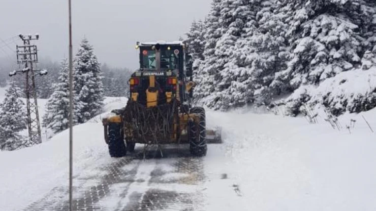 Kastamonu'da etkili olan kar yağışı sebebiyle kapanan köy yolları, ekiplerin çalışması ile ulaşıma açıldı.