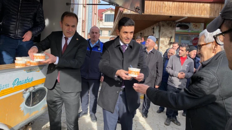 Kaymakam Kürşad Karaselvi, Belediye Başkanı Serkan Arı ile birlikte vatandaşlarla hasbihal ederek Cuma Namazı sonrası Kara Çorba ikramında bulundu.