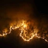 Karabük’te 12. saate girilen ve geceyi aydınlatan orman yangını dron ile görüntülenirken, ekiplerin karadan söndürme çalışmaları aralıksız devam ediyor.