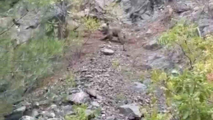 Karabük’te koşan ayı ile dağa tırmanan yavru ayı cep telefonu kameralarıyla görüntülendi.