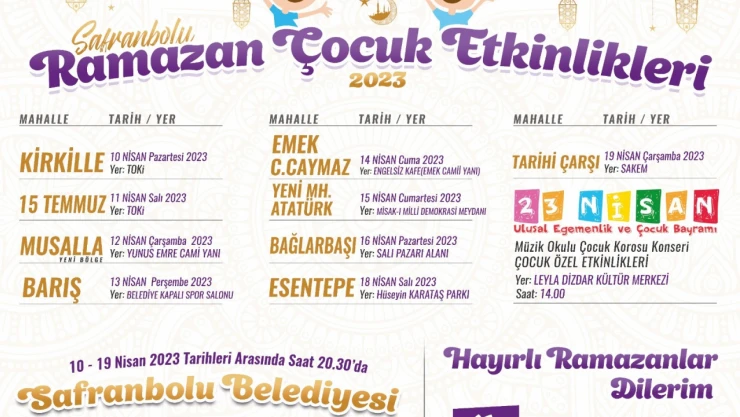 Safranbolu Belediyesi, ramazan ayının son 10 gününde her akşam farklı mahallelerde çocuklara özel eğlence programı düzenleyecek.