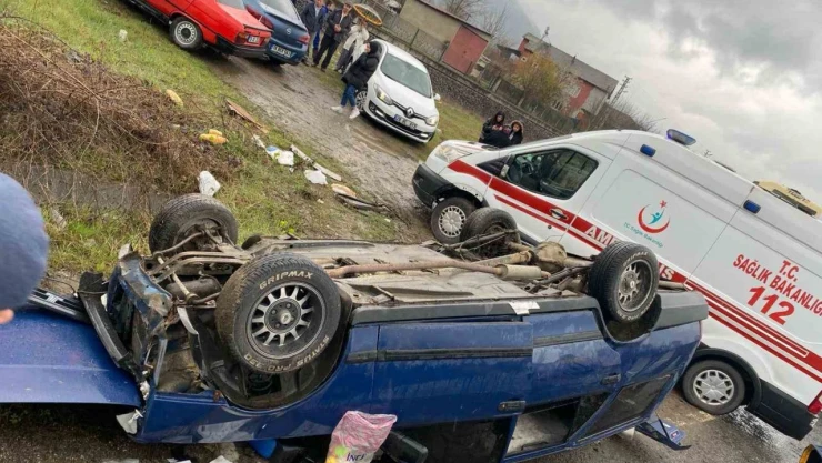 Karabük'ün Yenice ilçesinde meydana gelen trafik kazasında takla atarak ters dönen otomobilde iki kişi yaralandı.