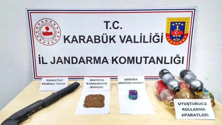 Edinilen bilgiye göre, Safranbolu Cumhuriyet Savcılığı koordinesinde Karabük İl Jandarma Komutanlığı ekipleri tarafından 2 şahsın üzerinde ve bulundukları ikamette yapılan aramada, 35,05 gram bonzai, birer adet sigara sarma kâğıdı ve esrar öğütücü aparat, 5 adet uyuşturucu madde kullanma aparatı ve 1 adet ruhsatsız pompalı tüfek ele geçirildi.