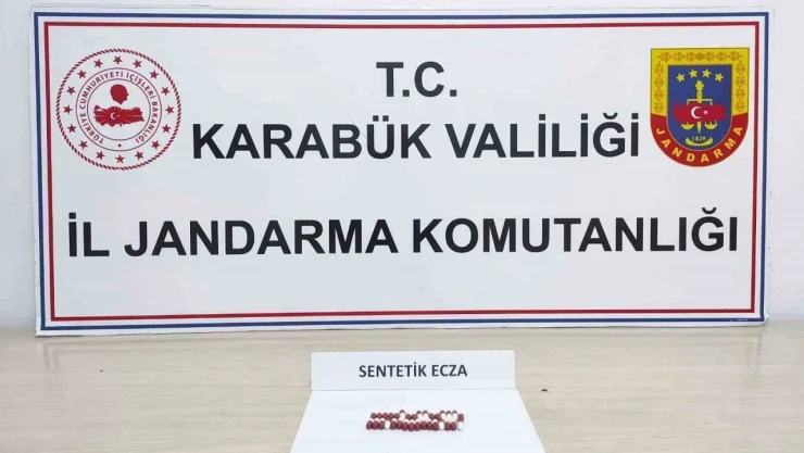 Edinilen bilgiye göre, Karabük İl Jandarma Komutanlığı ekipleri tarafından il merkezinde yapılan operasyonda 2 şahaın üzerinde ve eşyalarında yapılan aramada 32 adet sentetik ecza hap ele geçirildi.