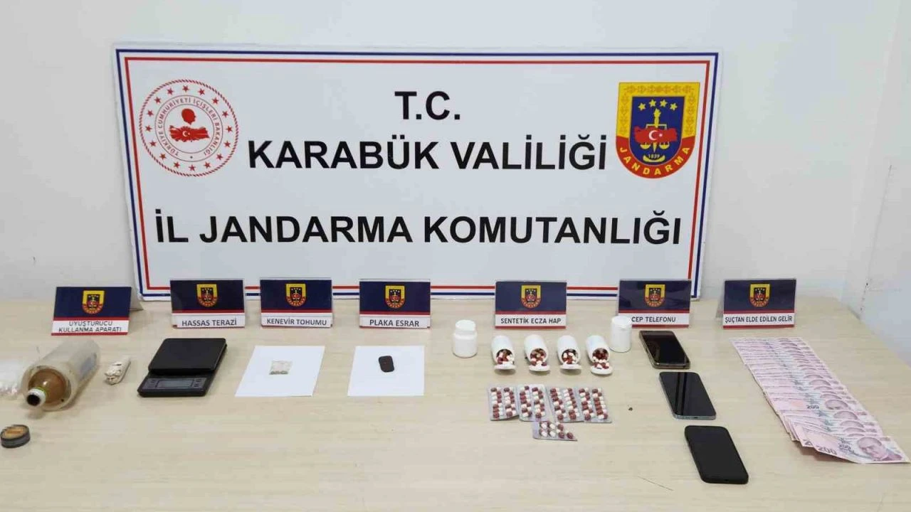 Edinilen bilgiye göre, il merkezinde yapılan çalışmalar kapsamında 3 şüphelinin ikametinde ve iş yerinde arama gerçekleştirildi. Yapılan aramalarda; 284 adet sentetik hap, 10,51 gram plaka esrar, 0,49 gram kenevir tohumu, 1 adet hassas terazi, 38 adet kilitli poşet, 2 adet uyuşturucu kullanma aparatı, 1 adet esrar öğütme aparatı ve 8 bin 800 TL nakit para ele geçirildi. Ayrıca 3 cep telefonuna da incelenmek üzere el konuldu.