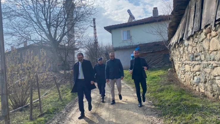 Kaymakam Abdullah Demirdağ, İlçe Jandarma Komutanı Üsteğmen Yasin Bulut ve Köylere Hizmet Götürme Birliği Genel Sekreteri Mustafa Çelik ile birlikte Karapürçek Köyü'nde incelemelerde bulundu.