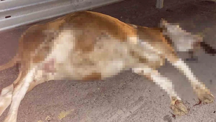 Kaza nedeniyle kısa süreli ulaşıma kapanan yol, hayvanın kaldırılmasının ardından yeniden ulaşıma açıldı.