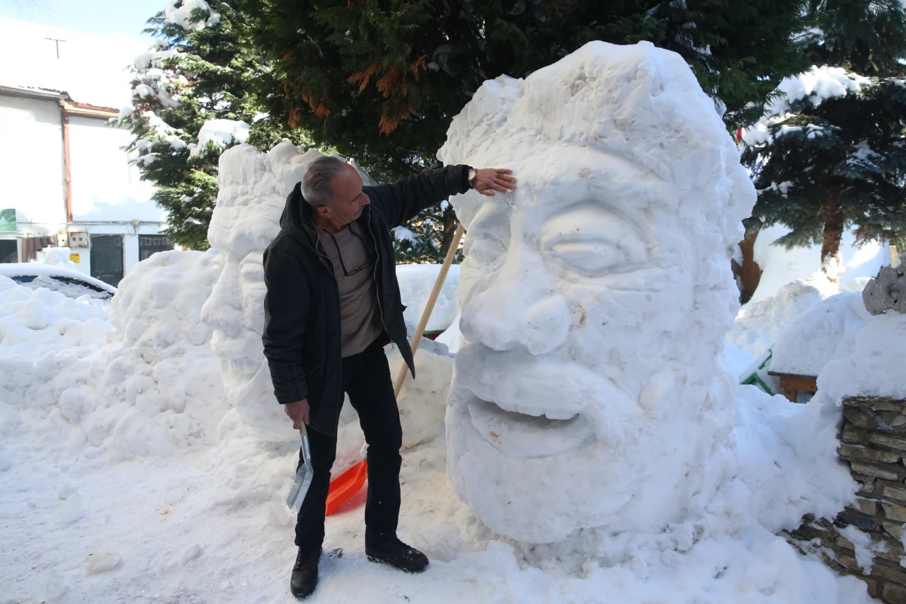 İlçede hırdavat dükkanı bulunan Tacettin Kömür, kardan heykel yapmayı çok sevdiğini söyledi. Artık bunun bir alışkanlık haline geldiğini ifade eden Kömür, "10-11 yıldır her sene kar yağdığında değişik değişik kardan adamlar yapıyorum. İnsanlar buraya geliyor, fotoğraflarını çekiyor. Her sene de gelip soruyorlar, 'Bu sene ne yapacaksın?' diye merak ediyorlar. Biz de işte her sene değişik şeyler yapmaya çalışıp milletin daha güzel fotoğraf çekmesini istiyoruz" dedi.