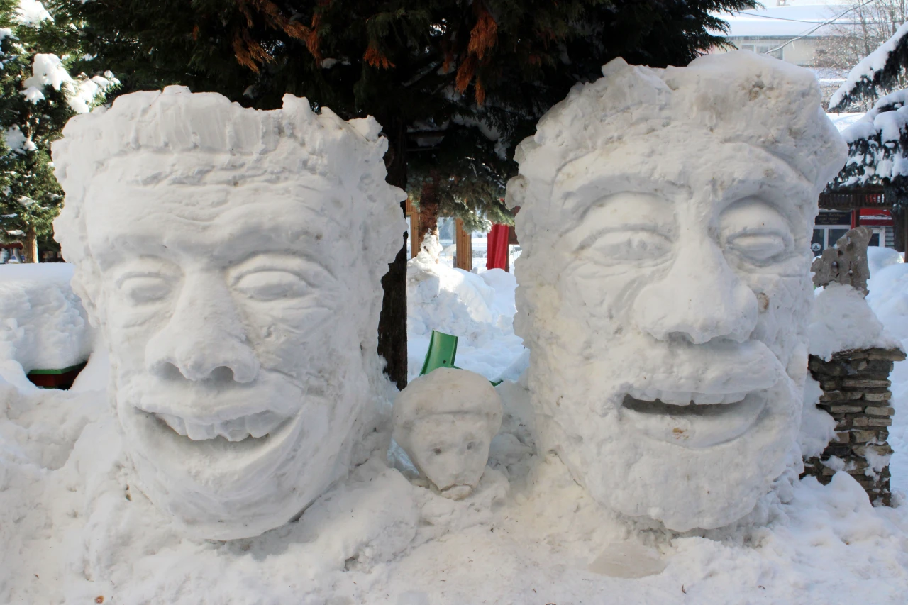 Azdavay’da 11 yıldır kardan heykeller yapan esnaf, bu yıl "gülen adamlar" heykeli yaptı.
