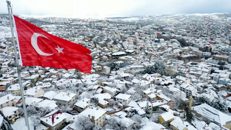 Karayolları ve İl Özel İdare ekipleri, kar küreme ve tuzlama çalışmalarına devam ediyor. Kent merkezinde de etkisini sürdüren kar yağışı ile oluşan manzara dron ile görüntülendi.