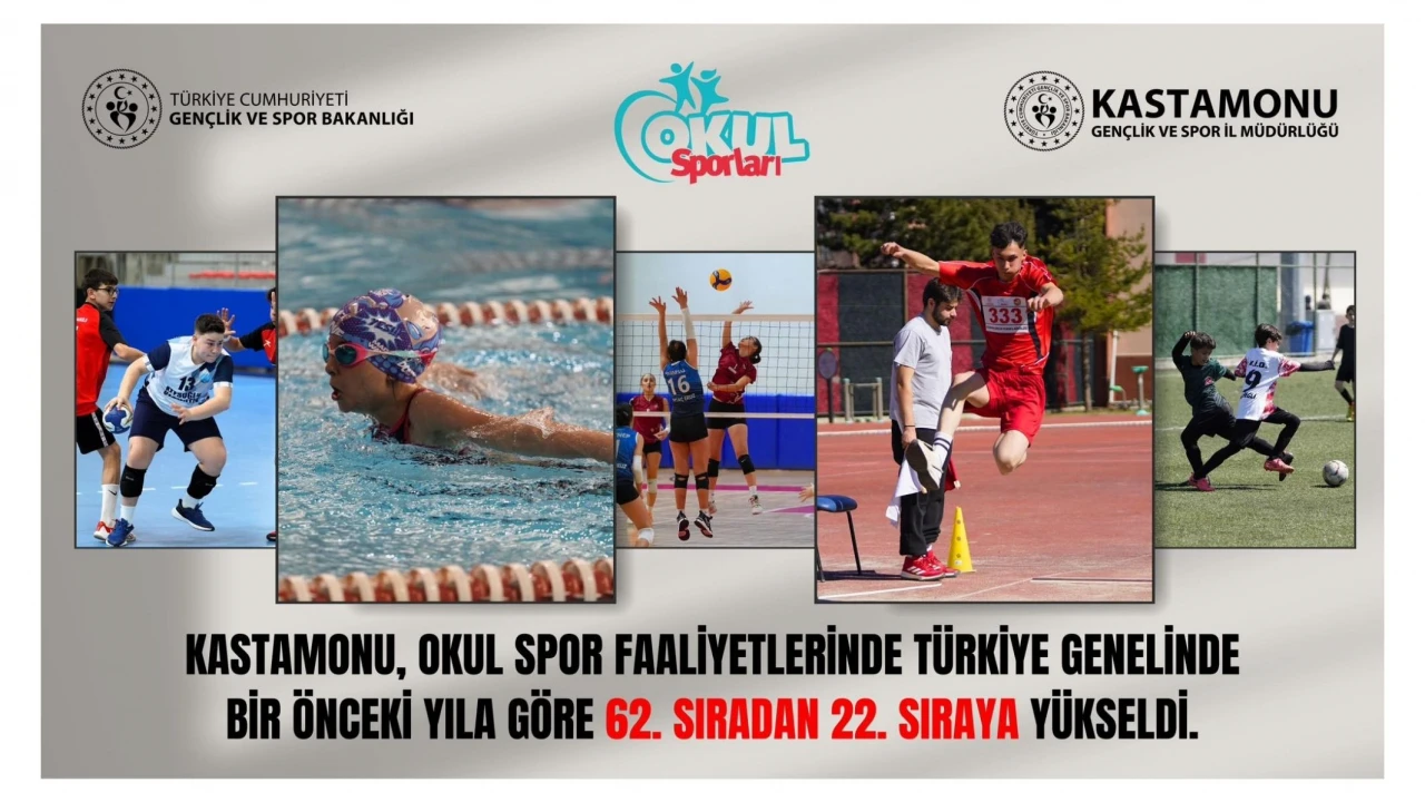 Gençlik ve Spor Bakanlığı Okul Sporları Daire Başkanlığı verilerine göre Kastamonu; 2024-2025 okul sporları sezonunda müsabakalara katılan öğrenci sayısında büyük bir artış göstererek 62’nci sıradan 22’nci sıraya yükseldi.