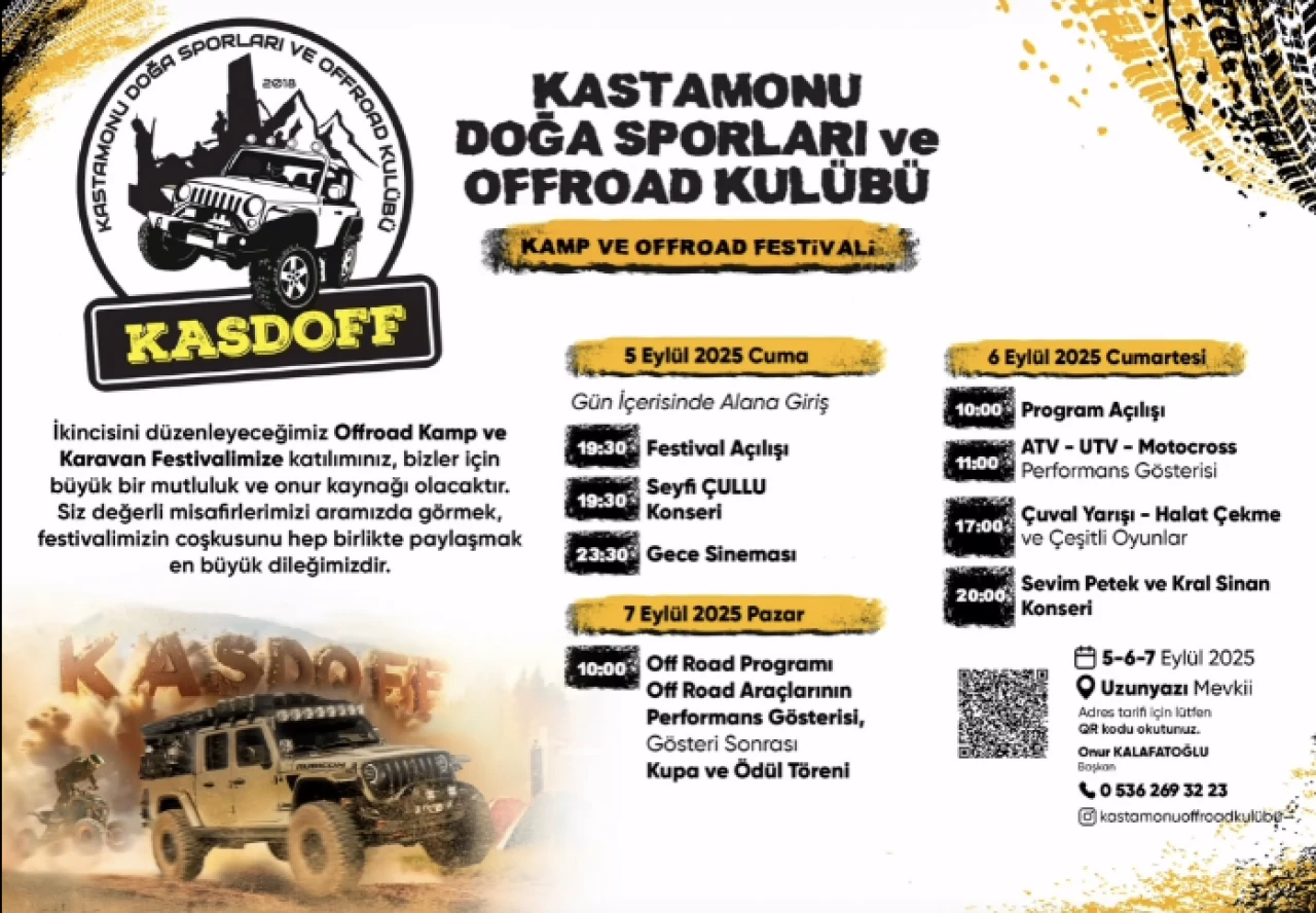 Kastamonu Offroad Kulübü yetkilileri, binlerce katılımcının buluşacağı festivalde hem adrenalin dolu yarışlara hem de eğlenceli etkinliklere tanık olunacağını belirterek, tüm halkı bu ücretsiz organizasyona davet etti.