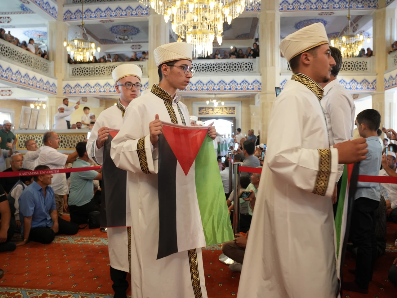 Kastamonu Müftülüğü bünyesindeki Hz. Pir Yatılı Erkek Kur’an Kursu’nda eğitim gören 38, Şehit Şerife Bacı Yatılı Kur’an Kursu’nda eğitim gören 22, Mescit Köyü Yatılı Kur’an Kursu’nda eğitim gören 1 öğrenci olmak üzere 61 öğrenci icazet alarak hafız oldu. 38 erkek hafız ve 23 kız hafız için Kuzeykent Ulu Cami ve Grandmoni Konferans Salonunda icazet programı gerçekleştirildi. Kuzeykent Ulu Cami’de gerçekleştirilen programda hafızlar açtıkları Filistin bayraklarıyla yürüyerek yerlerini aldı. Kur’an-ı Kerim tilavetiyle başlayan programda ilahiler okundu, eller semalara açılarak dualar edildi.