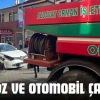 Çarpışmanın etkisiyle otomobilde maddi hasar meydana gelirken, kazada can kaybı veya yaralanma olmadığı öğrenildi. Olayla ilgili inceleme başlatıldı.