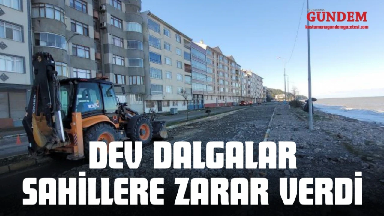 Kastamonu'da kıyı şeridi boyunca etkili olan fırtına sırasında dev dalgaların dövdüğü sahillerde hasar meydana geldi.