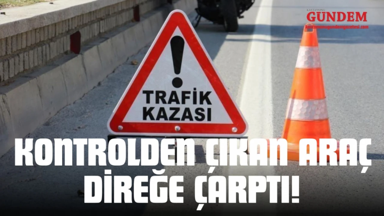 Kastamonu'da Kontrolden Çıkan Araç Direğe Çarptı!