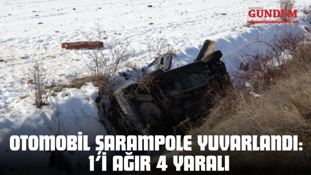 Kastamonu'da sollama sırasında kontrolden çıkan otomobilin şarampole yuvarlanması sonucu 1'i ağır 4 kişi yaralandı.