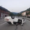 Kastamonu İnebolu'da yoldan çıkarak takla atan araçtakiler yaralandı.