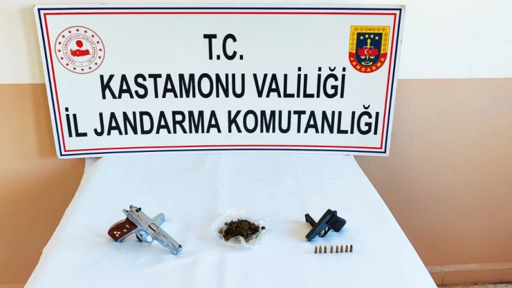 Edinilen bilgiye göre; Kastamonu İl Jandarma Komutanlığı ekiplerince uyuşturucu madde imal ve ticareti yapan şahıslara yönelik yürütülen titiz çalışmalar neticesinde; N.Y., E.Ç. ve M.Ç. isimli şahısların araçlarında yapılan aramada, 2 adet ruhsatsız tabanca, 8 adet tabanca fişeği ve kubar esrar ele geçirildi. Jandarma ekiplerince gözaltına alınan N.Y., E.Ç. ve M.Ç. isimli şahıslar adli makamlara sevk edildi.