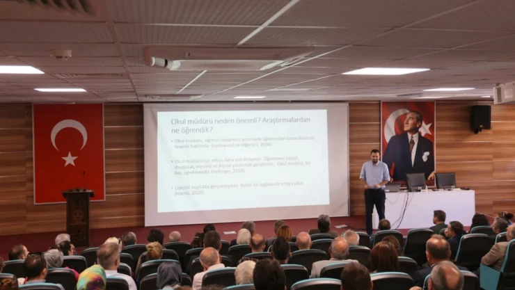 Karabük Üniversitesi Eğitim Bilimleri Bölüm Başkanı Prof. Dr. Ali Çağatay Kılınç, sunumunda okul liderliğinin öğrenci başarısına etkisine, yöneticilerin öğretmenlerin mesleki gelişimini destekleyici rollerine ve okul ikliminin akademik, sportif, kültürel ve sanatsal başarı üzerindeki önemine değindi. Etkili liderliğin eğitimde başarının en önemli unsurlarından biri olduğunu vurguladı.