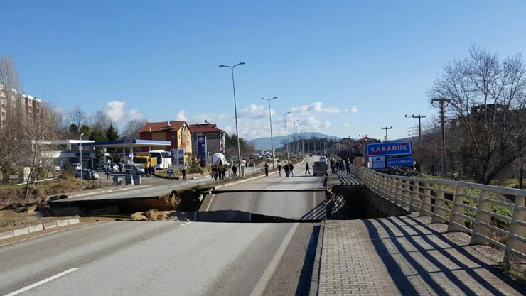 Karabük-Kastamonu karayolu Bostanbükü köyü mevkisinde geçtiğimiz günlerde meydana gelen heyelan ve sel nedeniyle bir köprü çökmüş yol araç ve yaya trafiğine kapatılmıştı. Konu hakkında bilgi veren Karayolları 15’inci Bölge Müdürlüğü yetkilileri söz konusu noktada ilk etapta ulaşımın sağlanması için servis yolunun yapıldığını ve trafiğe açıldığını belirti. Yoğun kar yağışı sonrasında biriken kar kütleleri ısınan havanın etkisiyle birlikte erimiş ve bir noktada biriken su kütlesi bendi yıkarak heyelana ve sel felaketine neden olmuştu. Yaşanan olayda can kaybı olmazken, 3 ev hasar görmüş, büyükbaş hayvanlar telef olmuş ve Kastamonu-Karabük karayolu üzerinde bulunan bir köprünün de yıkılmasıyla yol ulaşıma kapanmıştı. Yaşanan felaketin yaralarını sarmak için harekete geçen yetkililer, Kastamonu-Karabük arasındaki ulaşımın sağlanabilmesi için servis yolunu tamamladıklarını ve bugün itibariyle ulaşıma açacaklarını belirti. Yıkılan ana köprünün onarımı içinde çalışmalara başladıklarını belirten yetkililer, kısa sürede de bu çalışmayı bitirmeyi hedeflediklerini söyledi. Yaşanan felaket sonrası yapılana incelmelerde sorumlu kişilerin de tespit edileceğini vurgulayan yetkililer, olayla ilgili yasal sürecin başladığını ve soruşturmanın devam ettiğini söylediler.
