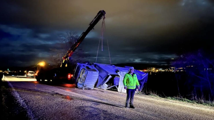 Kastamonu Taşköprü'de yoldan çıkan kamyonet tarlaya uçtu, 3 kişi yaralandı.