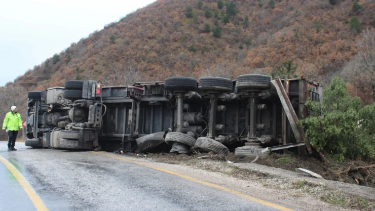 Kastamonu Tosya'da devrilen TIR'ın sürücüsü yaralandı