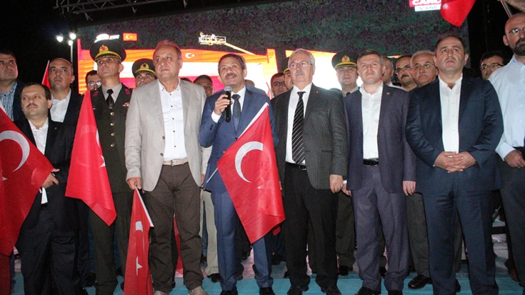 VALİ MESUT YILDIRIM: Tüm ülkede olduğu gibi 15 Temmuz gecesi sonrasında başlayan Demokrasi Nöbetini taçlandırmak için 81 ilde 'Demokrasi ve Şehitler Mitingi' düzenlendi. İlimizde Cumhuriyet Meydanı'nda 7'den 70'e binlerce kişinin katıldığı mitingde vatandaşlar coşkuyla demokrasiye sahip çıkmaya devam etti. Cumhuriyet Meydanı'nda düzenlenen mitinge Vali Mesut Yıldırım, Kastamonu Üniversitesi Rektörü Prof. Dr. Seyit Aydın, AK Parti...