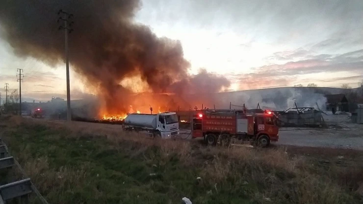 Yangın Çorum - Ankara Yolu üzerinde meydana geldi. Edinilen bilgiye göre, bir atık toplama merkezinin trafosunda çıkan yangın bir tuğla fabrikasına da sıçradı. İş yerini bir anda alevler sararken, iş yeri sahipleri itfaiye ekiplerine haber verdi. Yapılan ihbar üzerine olay yerine çok sayıda itfaiye, polis ve sağlık ekibi sevk edilirken, yangın yerine iş makineleri ve Toplumsal Olaylara Müdahale Aracı da (TOMA) getirildi. Ekiplerinin saatler süren çalışmasının ardından yangın kontrol altına alındı. Çıkan yangında yaralanan olmazken, iş yerlerinde büyük çaplı maddi hasar meydana geldi. Olayla ilgili soruşturma başlatıldı.