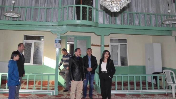 Çorum'un Laçin Kaymakamı Yağmur Şimşek, ziyaret ettiği Doğanlar köyündeki camide incelemelerde bulundu.