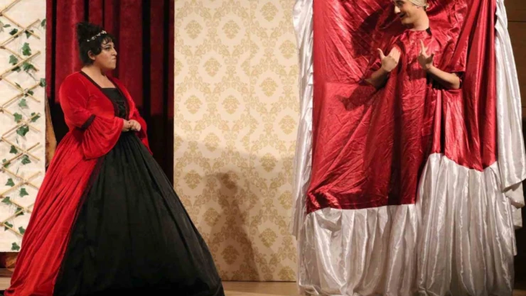 Akademik ve idari personeller ile öğrencilerin katıldığı tiyatro, büyük bir ilgiyle izlendi.