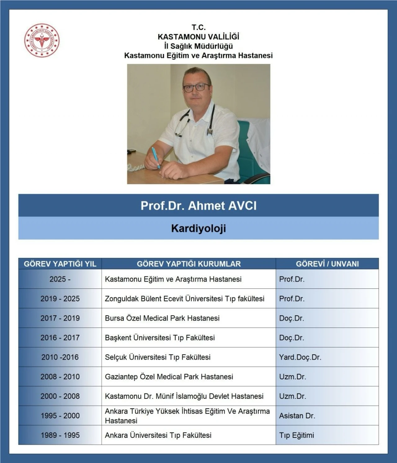 Zonguldak Bülent Ecevit Üniversitesi Tıp Fakültesi’nde 2019 yılından bugüne kadar görev yapan Prof. Dr. Ahmet Avcı, Kastamonu Eğitim ve Araştırma Hastanesi’nde katıldı. Prof. Dr. Ahmet Avcı, kardiyoloji bölümünde hasta kabulüne başladı.