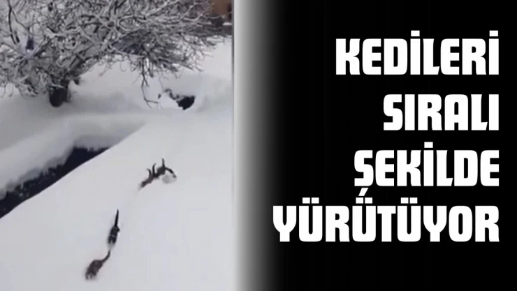 Çatalzeytin ilçesinde, imamın seslendiği kedilerin karda sıralı şekilde yürümesi cep telefonu kamerasıyla kaydedildi.