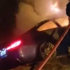 Bolu’da yol kenarındaki ağaçlara çarpan lüks otomobil, kazanın ardından alev alev yandı. Sürücü kazayı yara almadan atlatırken araç kullanılamaz hale geldi.