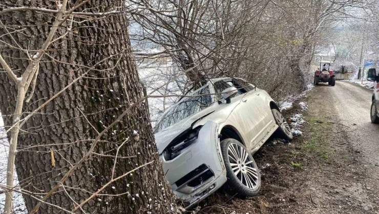 Kontrolden Çıkan Cip Ağaca Çarptı